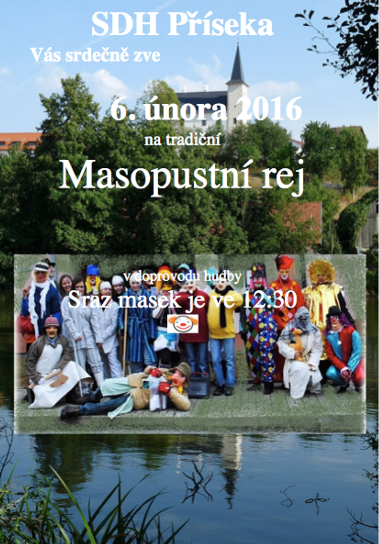 Letošního průvodu masek se zúčastnilo 21 masek, které za doprovodu pánů Střechy a Pojera prošly celou ves. Sraz masek byl ve 12:30 v kulturním domě v Přísece, kam se masky kolem šesté večer také vrátily. Fotografie budou zveřejněny po vytřídění.